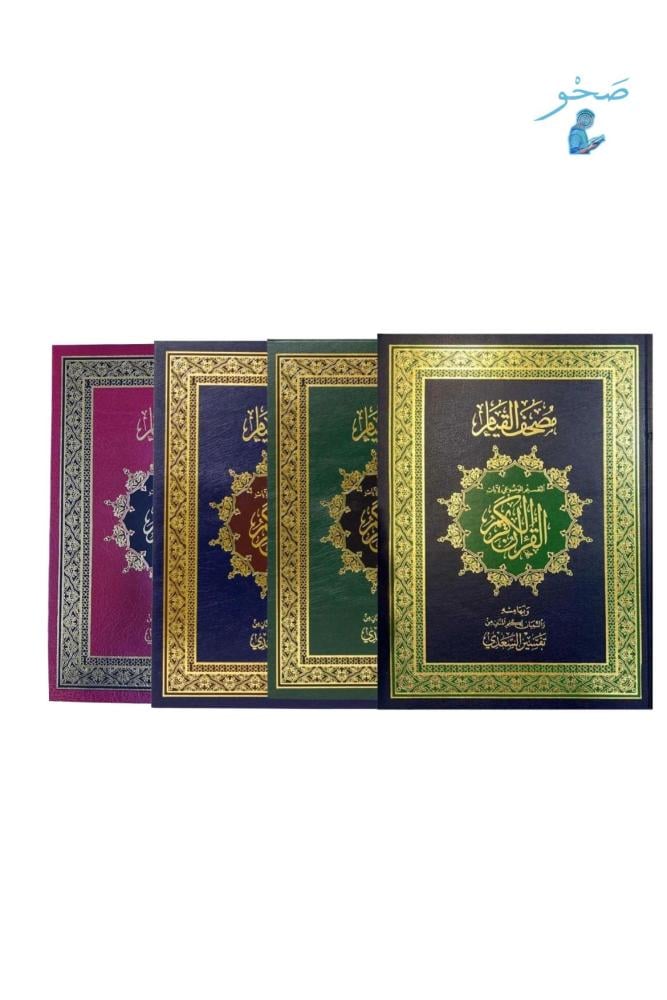 يعين على التضرع والانابة بين يدي الله سبحانه بعيدا عن الحركة الكثيرة التي تضيع رهبة الصلاة وخشوعها. مصحف القيام والتهجد :طريقة مبتكرة لجعل القراءة اسهل واسرع فقد جعلنا كل خمس صفحات من القرآن الكريم في صحيفة واحدة ولتسهيل الفهم قسمت الصفحة القرآنية بألوان التقسيم الموضوعي.